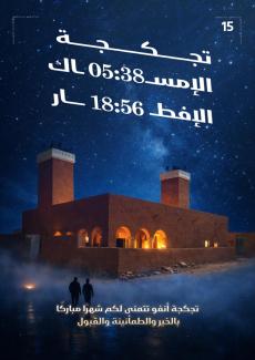 أظهرت الإمساكية الرسمية التي نشرتها وزارة الشؤون الإسلامية والتعليم الأصلي أن موعد الإمساك في الـ16 من أيام شهر رمضان المبارك بمدينة تجكجه سيكون عند الساعة 05:37 صباحا.