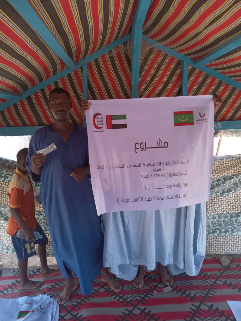 وشمل هذا الدعم توزيع مبالغ نقدية على 70 أسرة من سكان سكام وفاص وتامبين، بواقع 30 ألف أوقية قديمة لكل أسرة، تمويلًا من جمعية طيبة للثقافة.