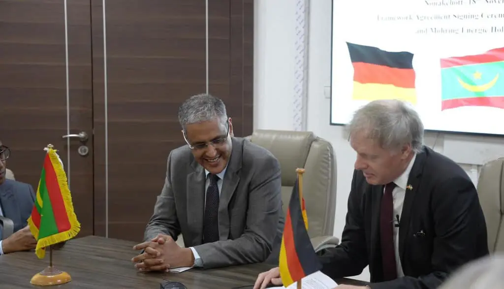 وقع وزير الطاقة والنفط محمد ولد خالد، مع المدير التقني ومؤسس مجموعة مورينغ إنرجي الألمانية، زاشا مهرينغ، اتفاقية إطارية لتطوير مشروع صناعي واسع النطاق لإنتاج الهيدروجين والأمونيا في موريتانيا.