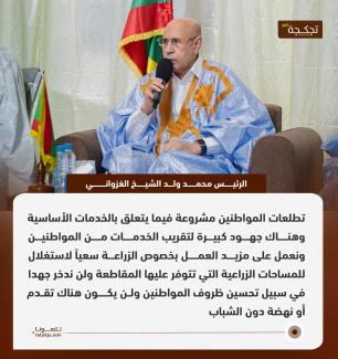 وصل الرئيس محمد ولد الشيخ الغزواني، مساء اليوم الثلاثاء، إلى مدينة أمبود، قادماً من مدينة مقامه.