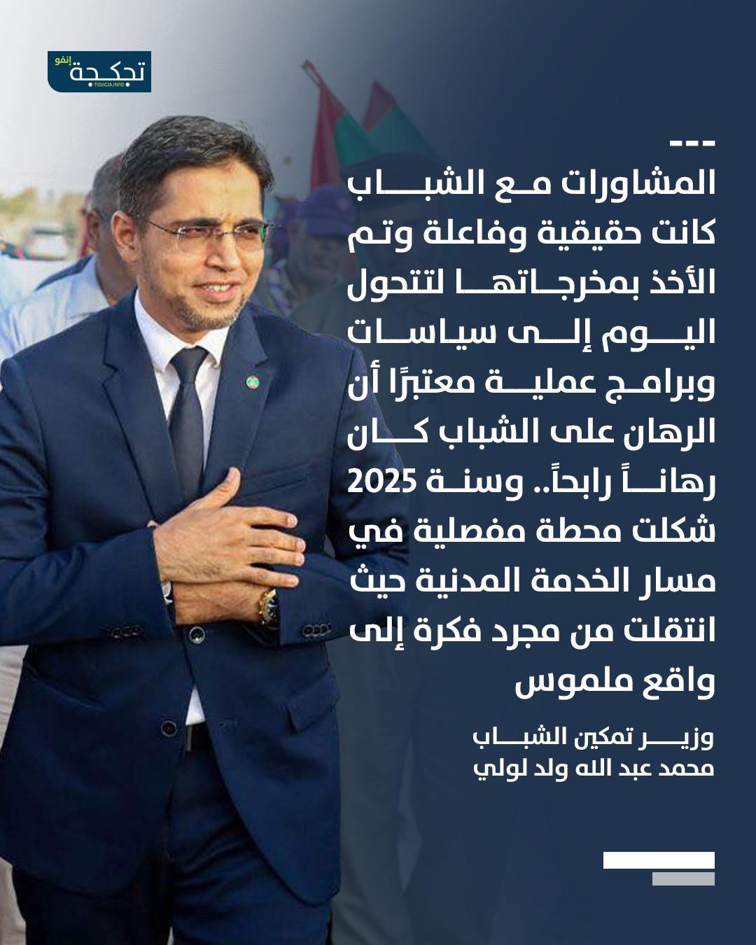 قال وزير تمكين الشباب محمد عبد الله ولد لولي، إن المشاورات التي أُجريت مع الشباب كانت حقيقية وفاعلة، وتم اعتماد مخرجاتها لتتحول إلى سياسات وبرامج عملية.