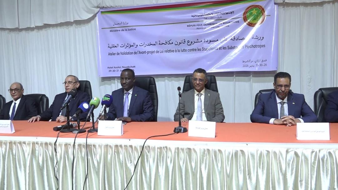 أشرف وزير العدل محمد ولد اسويدات، اليوم الخميس، في العاصمة نواكشوط، على إطلاق أعمال ورشة المصادقة على مسودة مشروع قانون مكافحة المخدرات والمؤثرات العقلية.