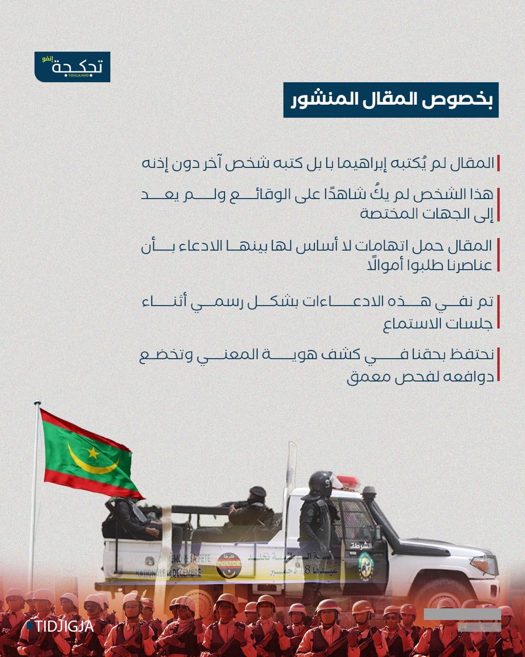 قدمت الإدارة العامة للأمن الوطني توضيحات حول ظروف توقيف المواطن إبراهيما با، مؤكدة أن العملية تمت وفق الإجراءات القانونية المعمول بها، ومشددة على نفي الاتهامات التي وردت في مقال نُشر مؤخرًا وحمل رواية مغايرة للوقائع.