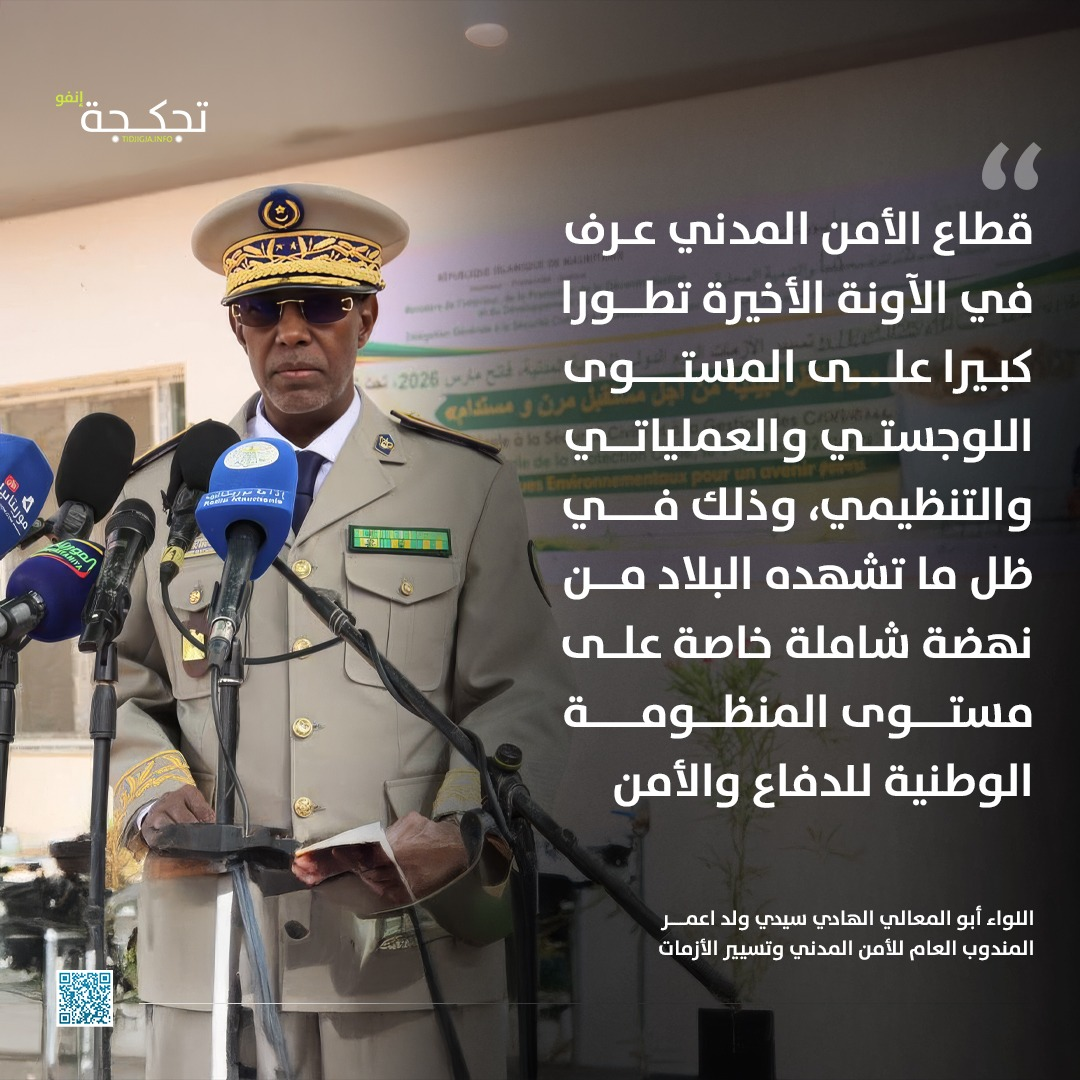 "قطاع الأمن المدني عرف في الآونة الأخيرة  على المستوى اللوجستي والعملياتي والتنظيمي، وذلك في ظل ما تشهده البلاد من نهضة شاملة خاصة على مستوى المنظومة الوطنية للدفاع والأمن،"